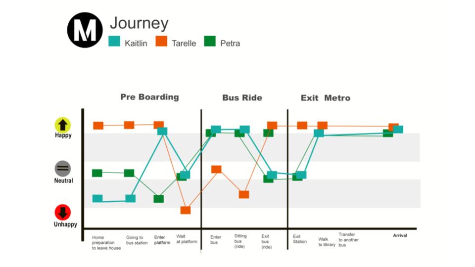 Our quantitative research gave us insides into a sensor and driverless bus technology. We tested through a bus simulation and desktop walkthroughs how the user would respond to future bus features as sensors, bus assistant, pleasant smell, and pleasant audio. Once a positive bus experience is designed, passengers are more prepared to interact with each other, which creates a sense of community, and consequently makes them feel safe.